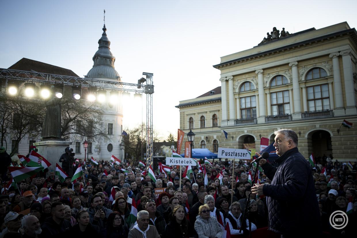 Ha nem akarjuk, hogy kizsebeljék Magyarországot, nemzeti kormányra van szükségünk - jelentette ki a miniszterelnök szerdán a szentesi választási nagygyűlésen.